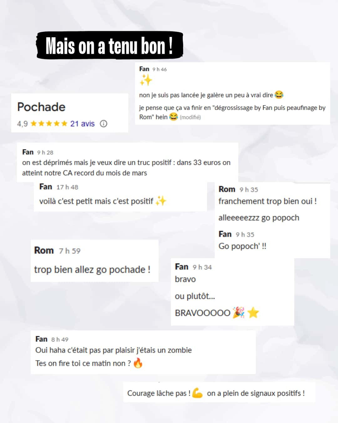 Jamais nous ne vous remercierons assez de porter ce projet de plateforme d'écriture à nos côtés, alors encore une fois, merci ! Nous espérons que les 24 ateliers d'écriture (ah oui quand même) organisés depuis le mois de mars vous ont plu, et que celles et ceux qui nous suivent depuis cette date ont pris plaisir à voir Pochade grandir, s'améliorer, évoluer. ✍