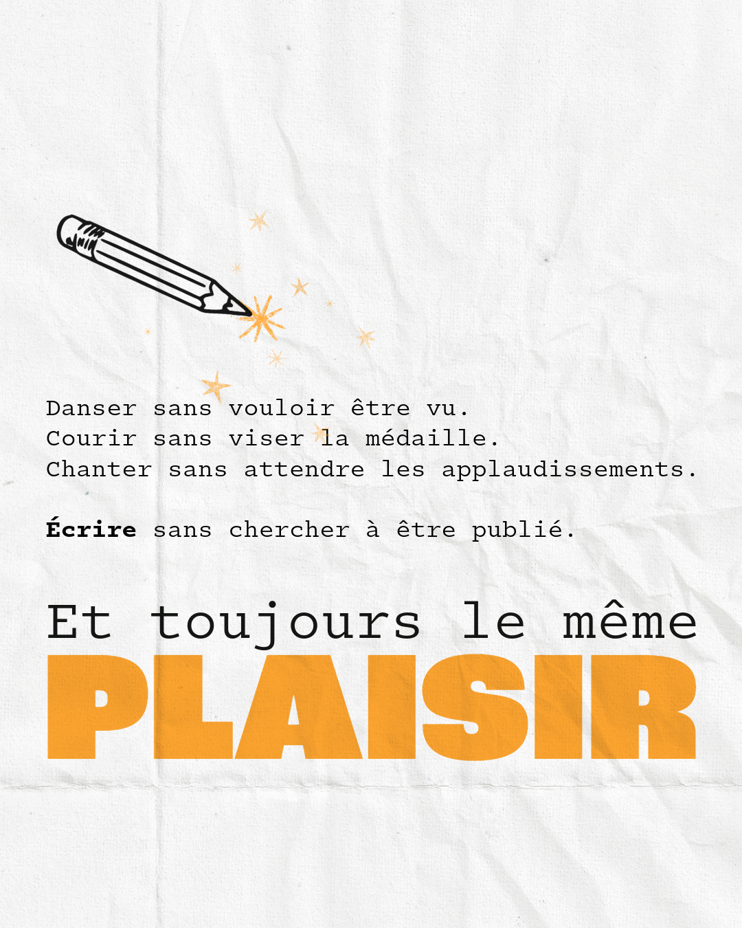 Le plaisir d’écrire, c’est notre marotte, vous le savez bien… et nous en avons même fait le slogan de Pochade (“offrez-vous le plaisir d’écrire"). Au mois de janvier publié ce petit visuel qui vise à expliquer l’esprit pochade… liberté, décomplexion, et plaisir, toujours. :)